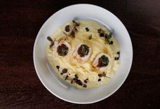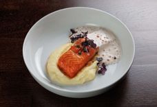 Лосось под сливочно-икорным соусом и пюре